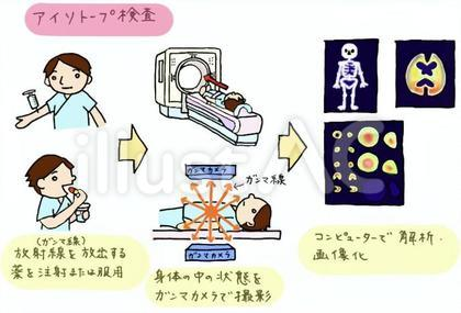 次に⑤アイソトープ検査です。アイソトープ検査は、体の中に放射性医薬品を入れて、体の働きを画像で調べる検査になります。「核医学検査」と正確にはいいます。がんの転移があるのか、心臓の血流はどうか、甲状腺機能はどうかなど、臓器の機能が正常か?という検査になります。アイソトープ検査は「時間管理」が重要です。薬剤の投与から撮像までの時間で画像の質が変わってきます。