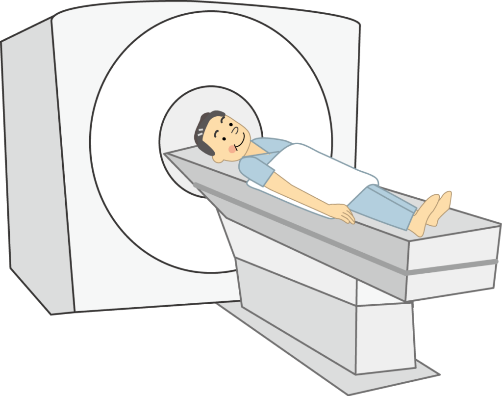 次に③MRI検査です。MRI検査は磁気共鳴画像検査といって強い磁石で画像の断面画像を撮影します。よって、X線は使わないので被ばくの心配はありません。脳梗塞や脳腫瘍、靭帯、椎間板などの撮影が得意です。MRI検査も大きなドーナッツ状の装置に入ります。検査時間は30分ほどかかり少し長めです。金属が持ち込みできないのが特徴です。誤って持ち込んでしまうと重大なアクシデントにつながりますので、撮影される際はご注意ください。